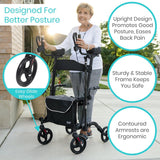 You’ll love the comfortable built-in seating and convenient storage options for both your cane and your daily belongings. You’ll also love how easy it is to fold away and store in small spaces like the trunk of your car or on a plane. Looking improve your mobility? Try the Upright Walker Pro.