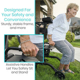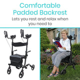 The Vive Upright Walker is a compact mobility aid designed with your comfort and safety in mind. Its adjustable high grip design allows for more control and less strain, as you will never have to lean down to operate the walker.